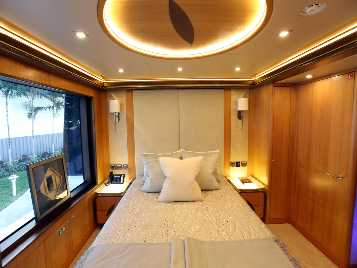 Luxury charter yacht Serenity can comfortably sleep her guests in 6 lovely staterooms, including the owner’s stateroom, which is located on the main deck, A VIP cabin on the upper deck and four guest cabins on the lower deck.