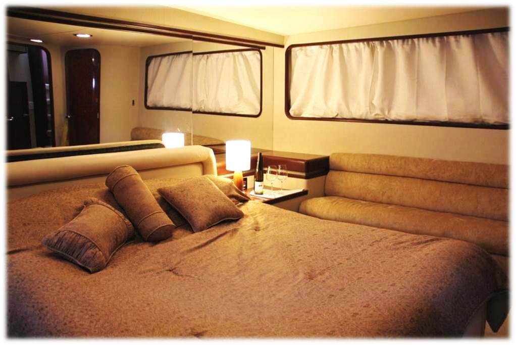 The VIA MARE yacht has a huge Master aft with ensuite bathroom; VIP forward with ensuite bathroom, and a guest cabin to port with over/under bunks.