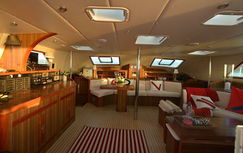 The salon and dining are an open plan, featuring 2 generous seating areas, an adjustable formal dining table, additional coffee table and entertainment system. Forward, port and starboard windows bring in fabulous natural light.
