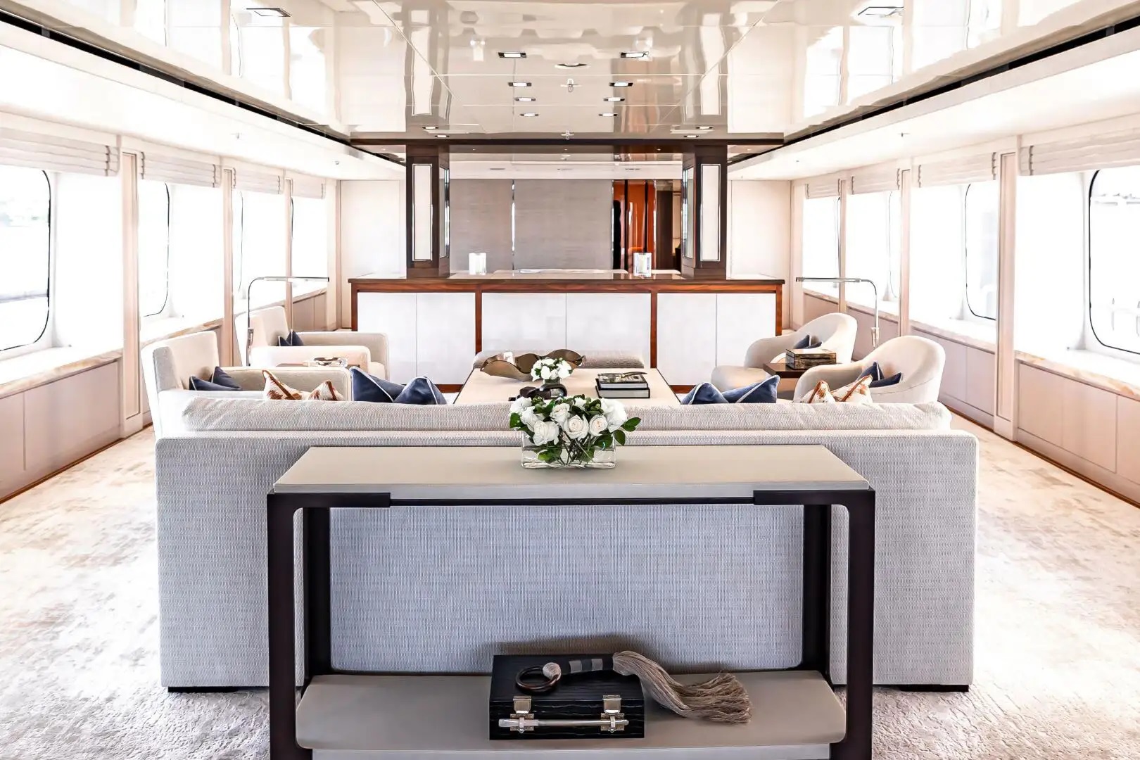 Chasseur also boasts a pop-out balcony at the sky lounge; generous outdoor spaces at aft main bridge and sun decks, as well as wrap-around glass at the main salon.
