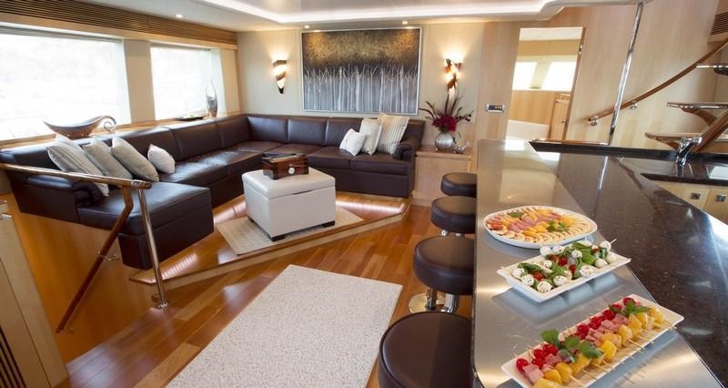 The aft deck is adjacent to the salon and shaded by the upper deck. Here guests can dine alfresco, sit back and enjoy the large aft seating space, watch TV on the flat screen and keep an eye on the water enthusiasts. Wide decks wrap around the LA MANGUITA catamaran, leading to a spacious foredeck.