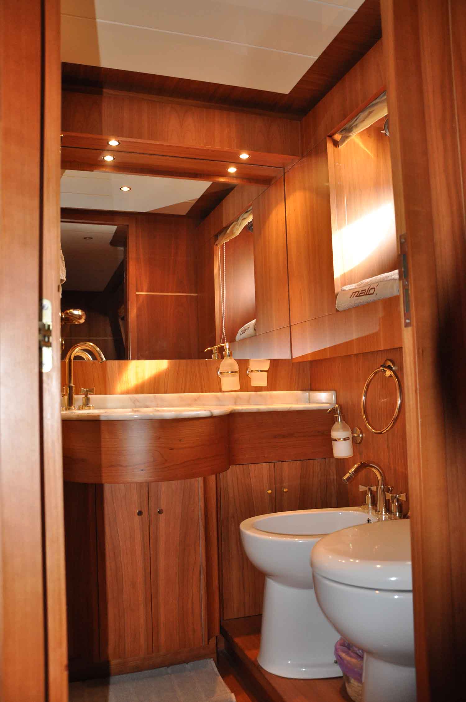 The VIP cabin is forward and full beam of the yacht, with a double bed. A further two guest cabins are on port and starboard, both with side by side single beds. Tenders & Toys onboard the canados 86 yacht MALO includes a tender 4,60 40hp and JETSKI.