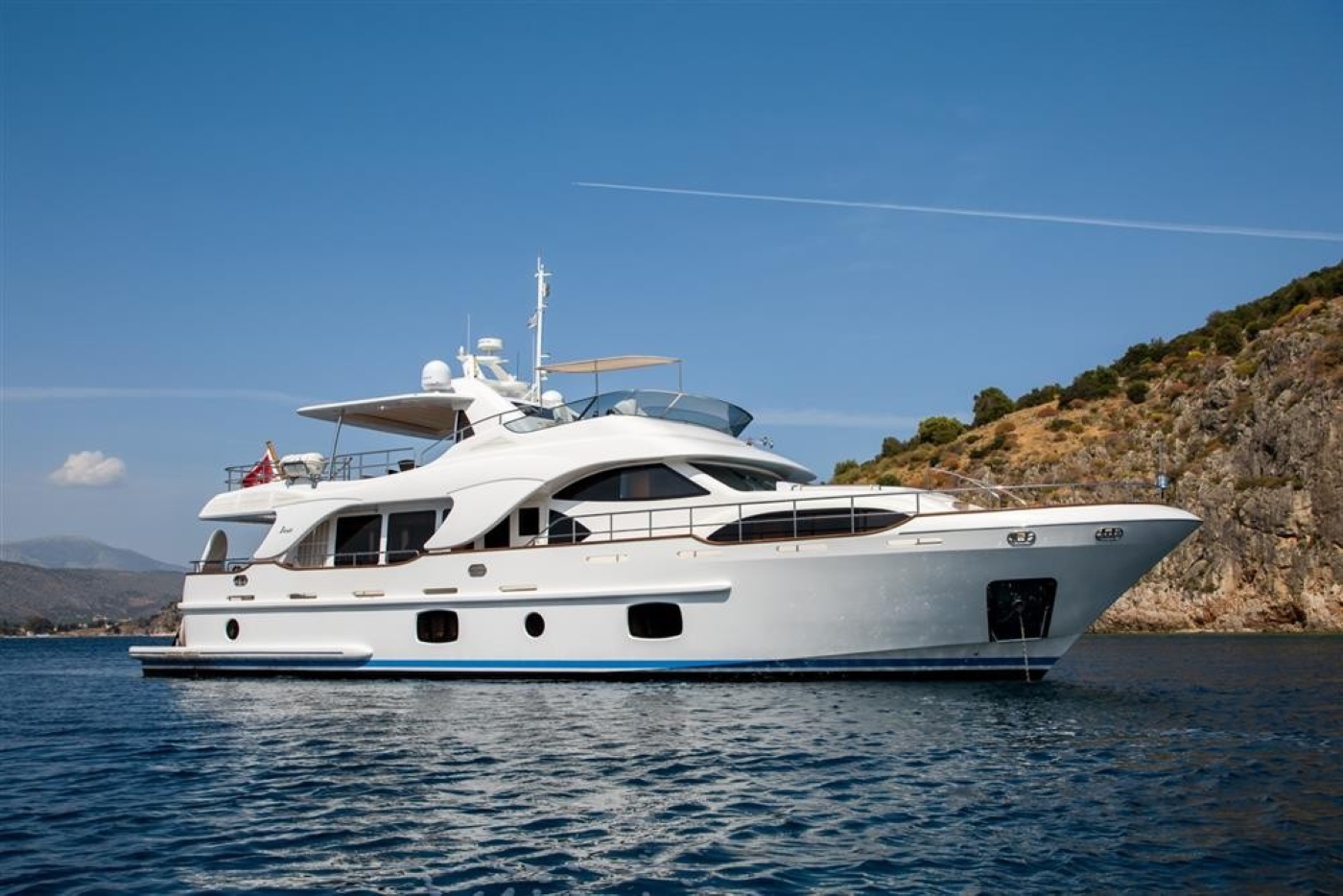 The yacht is powered by 2 x CAT 885hp engines, with a maximum speed of 13 knots and a cruising speed of 10 knots. She is fitted with Najad stabilizers, for optimum comfort.