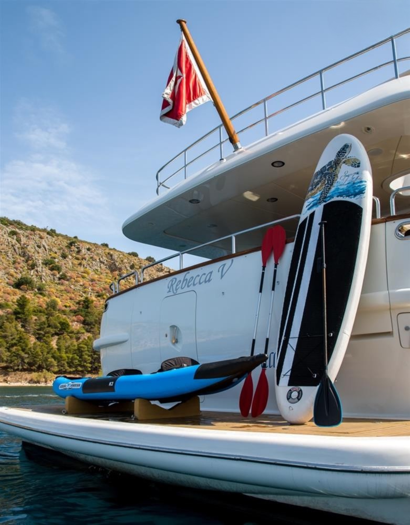 The Benetti motor yacht REBECCA V has a beam of 7.07m (23' 2") and a draft of 1.8m (5' 11").