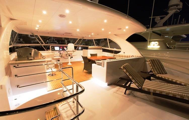 Above the main deck, crewed yacht SEA BOSS offers a flybridge with shade, full wet bar and alfresco dining option.
