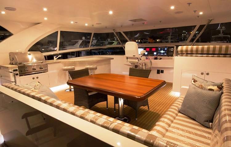 The main deck has a large aft deck space, boasting shade, plenty of seating, an alfresco dining option and direct entry to the salon, ideal for entertaining. Further aft, the swim platforms on port and starboard, allow for effortless water access to the many sea toys on offer.