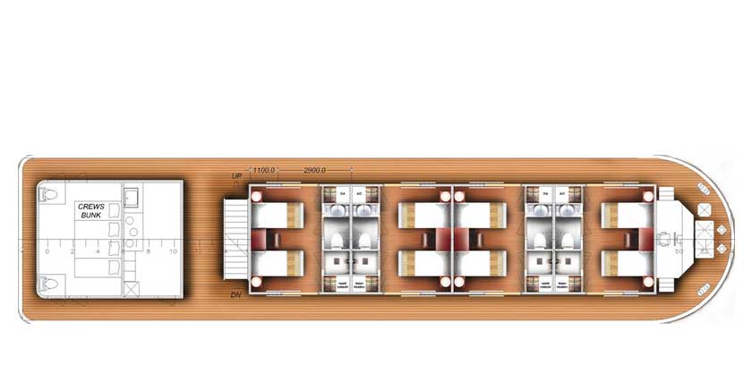 Her accommodation sleeps a maximum of 10 guests over 5 cabins.