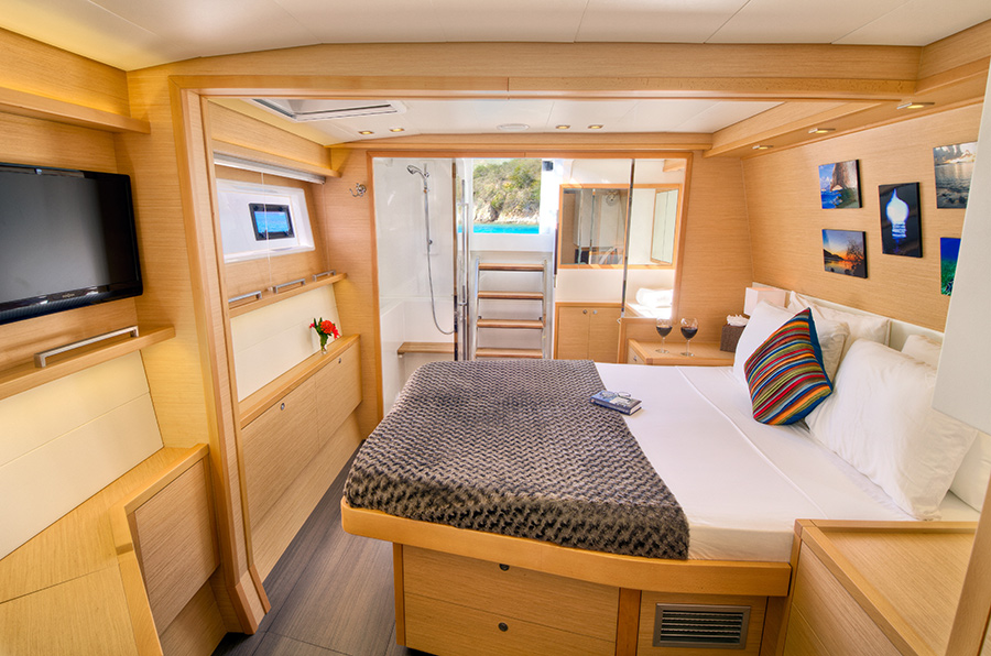 Guest accommodation is in 3 fully air-conditioned en-suite cabins, in the port and starboard hulls, each with plenty of natural light.