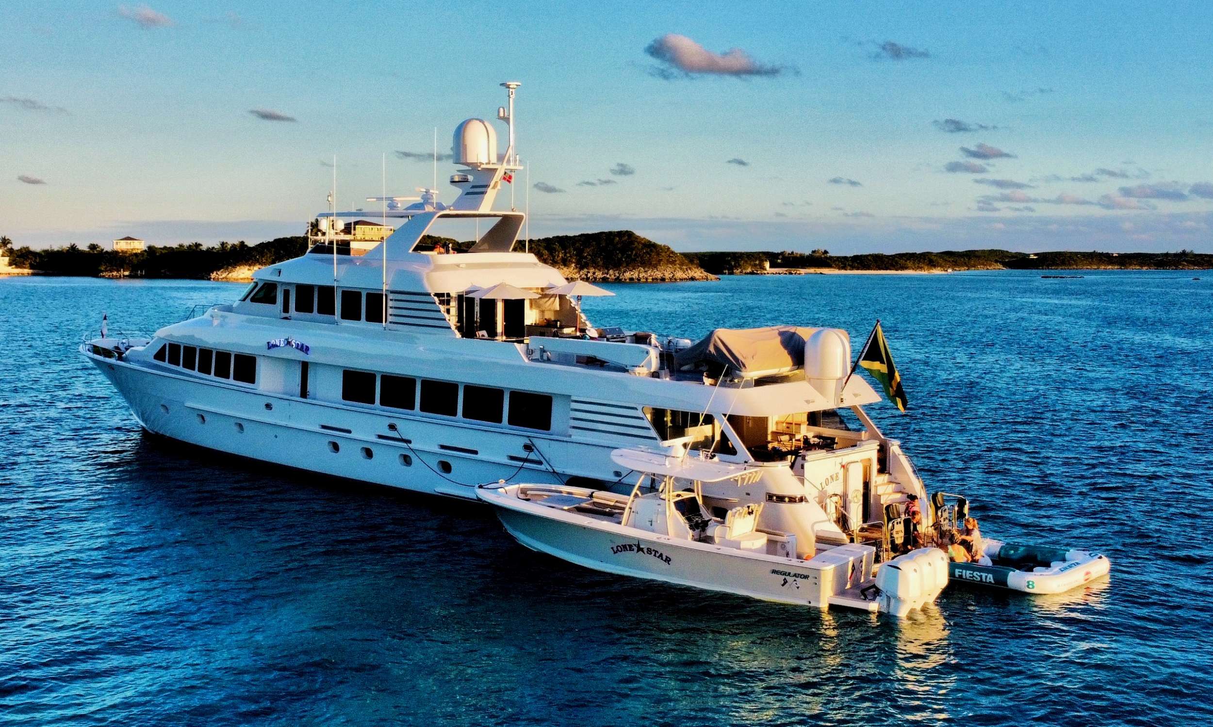 Luxury Motor yacht LONE STAR (ex Victory Lane, Equinoccio, Allegra, Charisma, Sinbad) is a 130ft Hatteras with interior design by Dee Robinson. Built in 1995, LONE STAR has undergone several extensive refits, with the latest in 2022. She cruises the waters of the Bahamas and the Caribbean.