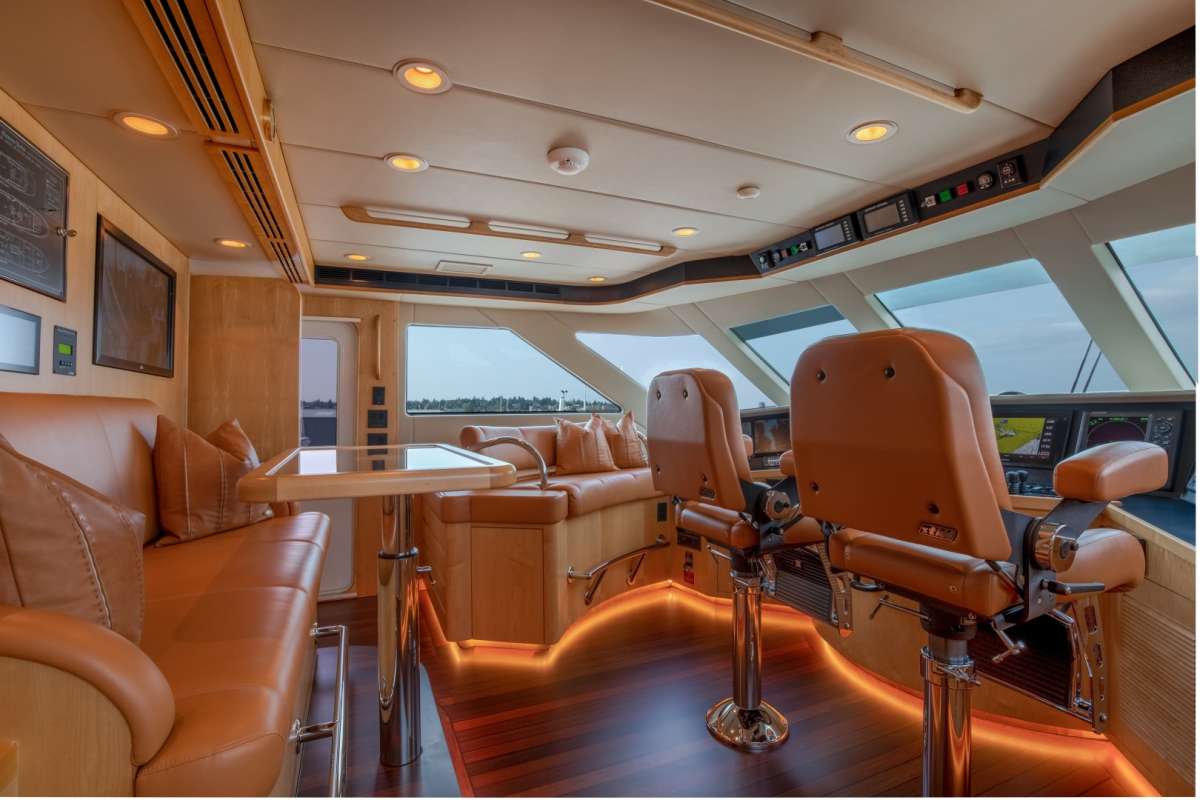 High above on the flybridge are not only excellent views but also a spa pool, wet bar, 3 x chaise lounges and a table for 6. Access to the yacht is either from the Passerelle for stern boarding or side boarding.