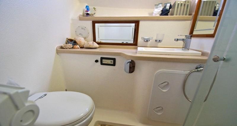 On the port side, the galley creates a social ambiance. The salon leads to the port and starboard hulls, with 4 double, en-suite cabins.