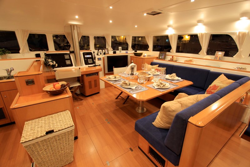 The lounge is an integrated plan, with a convertible coffee to dining table, chairs and large L shaped sofa. Forward of the salon, is a navigation table, while the galley sits to the port. The SOUL’S CALLING yacht boasts TV entertainment and plenty of DVD’s to choose from.