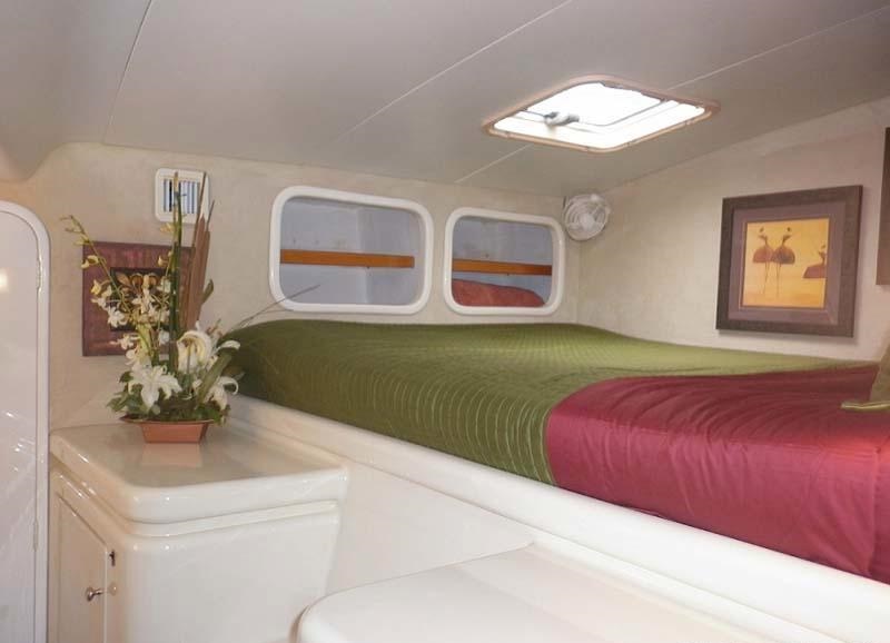 The galley is to port of the lounge, creating a social and welcoming ambiance. Guest accommodation is in the port and starboard hulls. The SWISH catamaran is full air conditioned for optimum comfort. The professional crew of 2 has separate quarters and en-suite facilities, providing guests with further privacy.