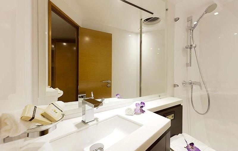 Above the main deck, crewed charter yacht FLOW offers a spacious flybridge, with additional sunpads and seating, a fabulous place to enjoy a cool sundowner. The FLOW catamaran can accommodate 10 charter guests, in 5 en-suite double cabins.