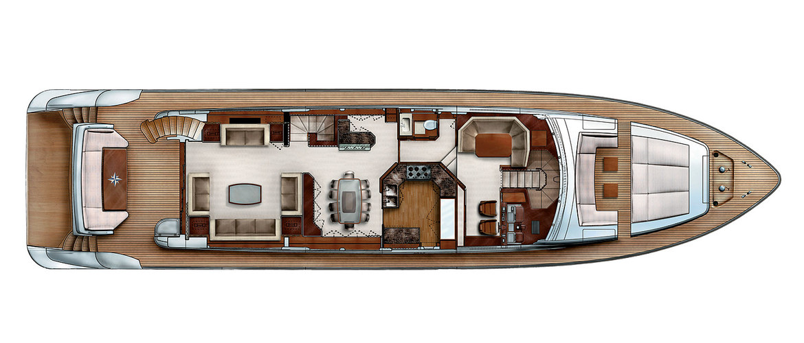 She has the largest flybridge of its category, a great space to socialize and have fun onboard.