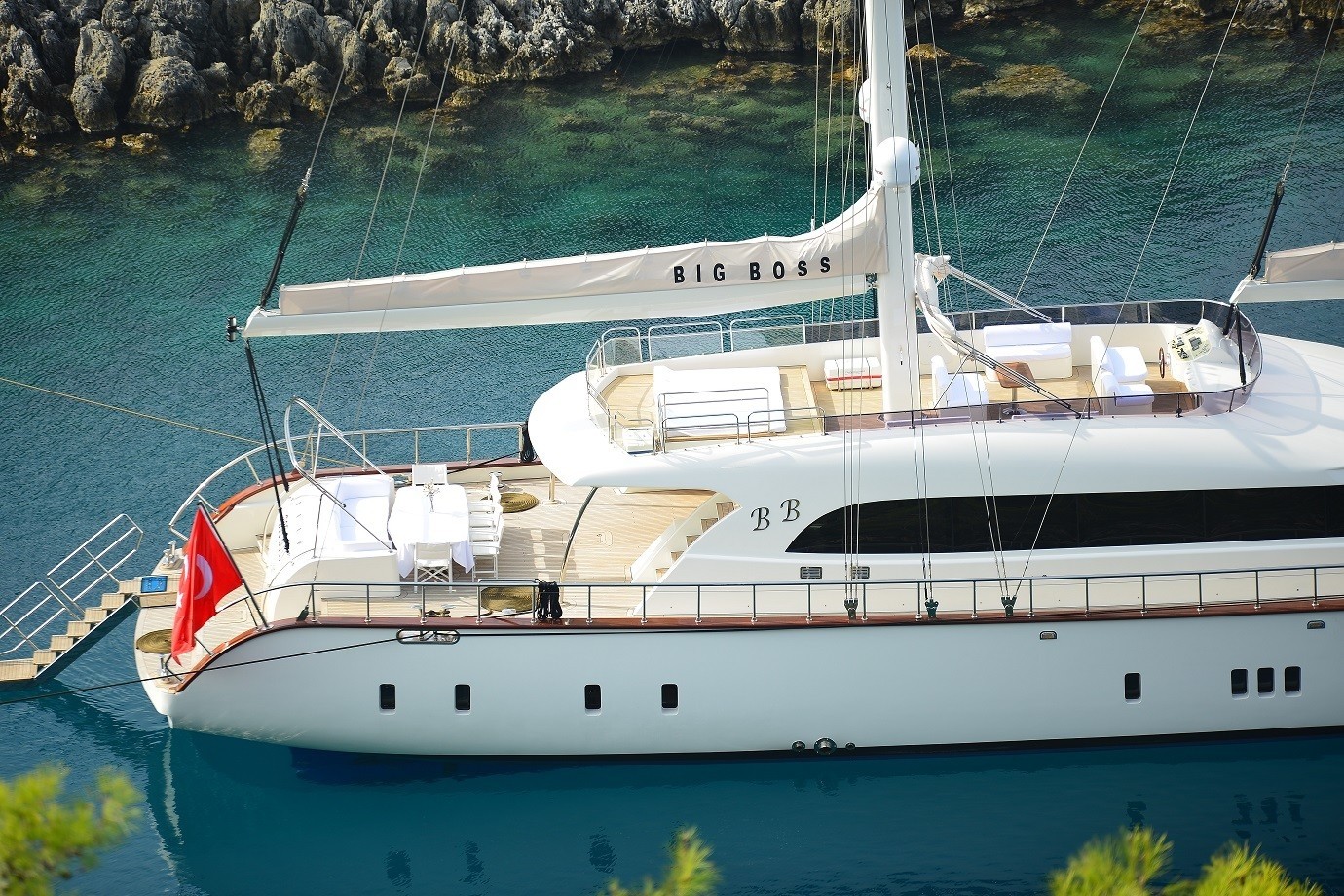 Built in 2013, the 36m (118ft) custom Gulet BIG BOSS, offers crewed yacht charters in the Eastern Mediterranean. S/Y BIG BOSS boasts accommodation for up to 10 charter guests, in 5 en-suite cabins. Charter yacht BIG BOSS is the ...