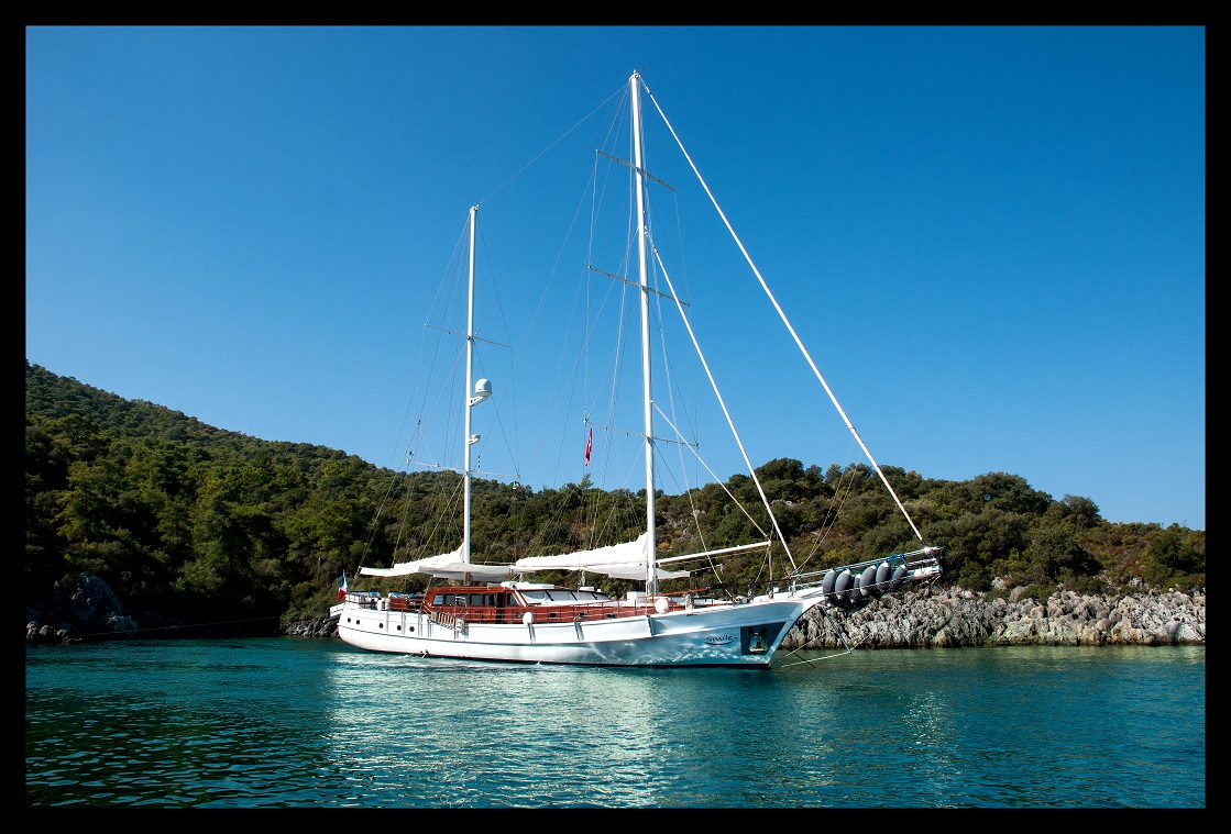 The yacht is a schooner rigged Gulet design, offering deluxe crewed yacht charters in the Greek and Turkish waters. S/Y SMILE can accommodate up to 12 charter guests, in 5 en-suite cabins.