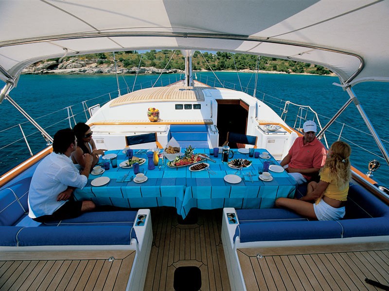 Quite simply, she is a stunning looking yacht with perfect proportions, jet blue hull, white superstructure, teak decks and mahogany interior. One of her most appealing features is the custom designed upper salon which gives panoramic views of the stunning Greek Islands.