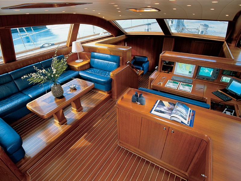 The master cabin, located aft has a queen size bed and a lounge area with a writing desk. The master cabin also has satellite TV, DVD and video. The second and third cabins are twin bedded cabins. All cabins have private ensuite facilities and a CD player and radio system.