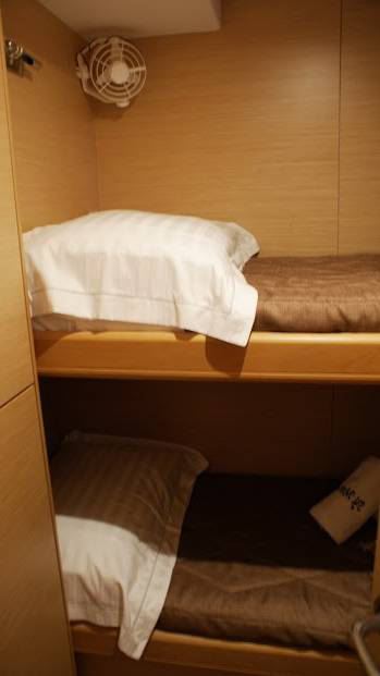 Crewed charter cat MOONLIGHT can accommodate up to 10 guests in 5 cabins. On the port side are 2 double cabins, fore and aft. On the starboard side are a further mirror image double cabins and a central cabin, offering upper and lower bunk beds. All 5 cabins are fully air conditioned and feature private en-suite facilities.