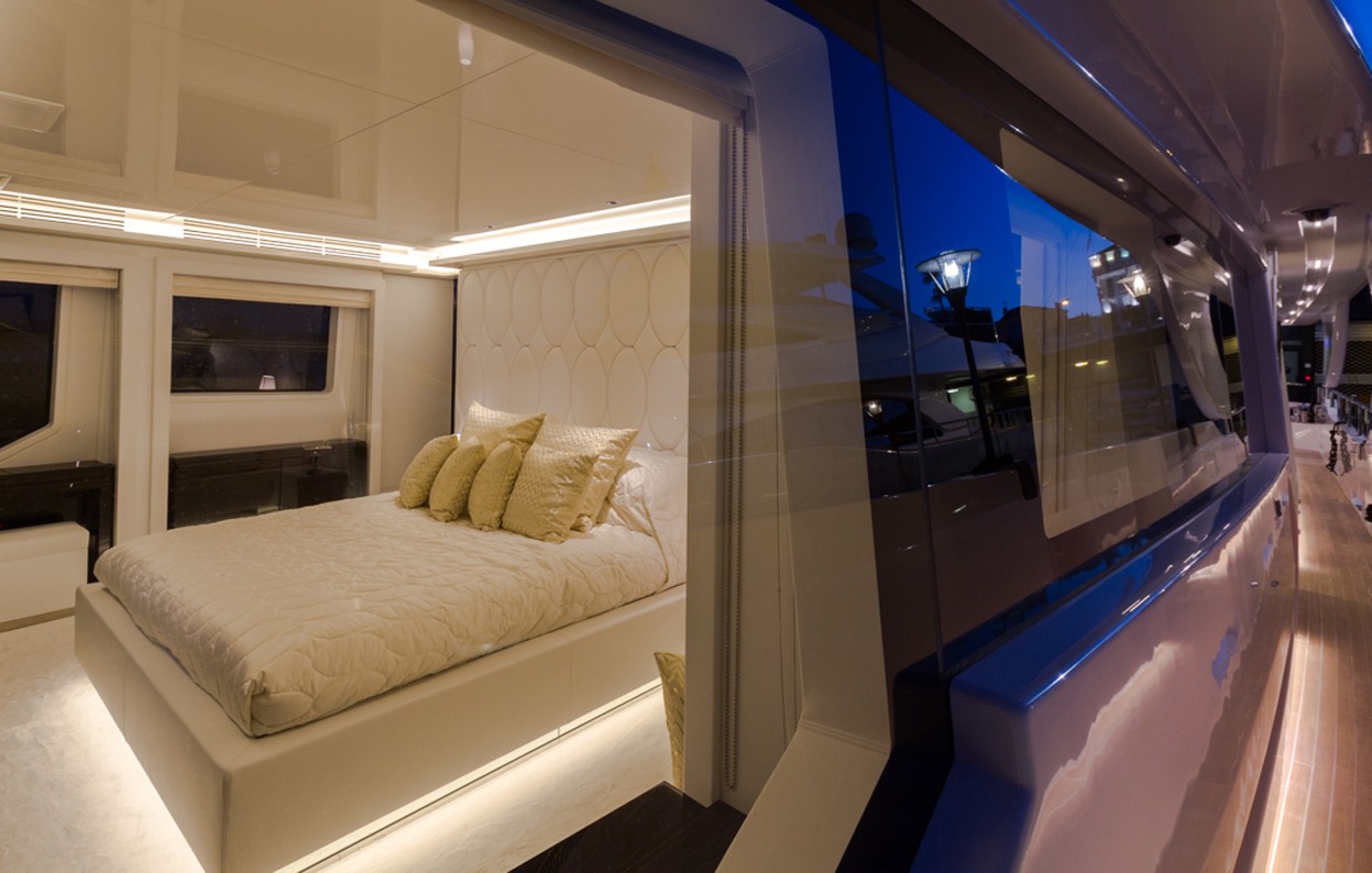 Accommodation includes one large master suite located on the main deck and featuring an ensuite bathroom with a bidet and a small sauna in the shower. Furthermore, there are two VIP cabins, both doubles with ensuite bathrooms that include a bidet. Two additional guest cabins with ensuite bathrooms complete the accommodation layout.