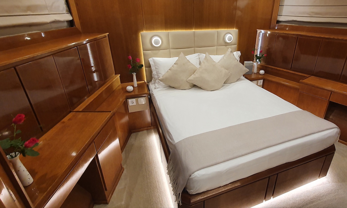 Built in 1994 by the Greek shipyard Aegean Builders, luxury crewed motor yacht SPICE OF LIFE (ex EVIDENCE, Ekali) measures 31m (101.8ft). The yacht underwent a refit in 2020 and is now available in the West Mediterranean, offering accommodation for up to 12 guests.
