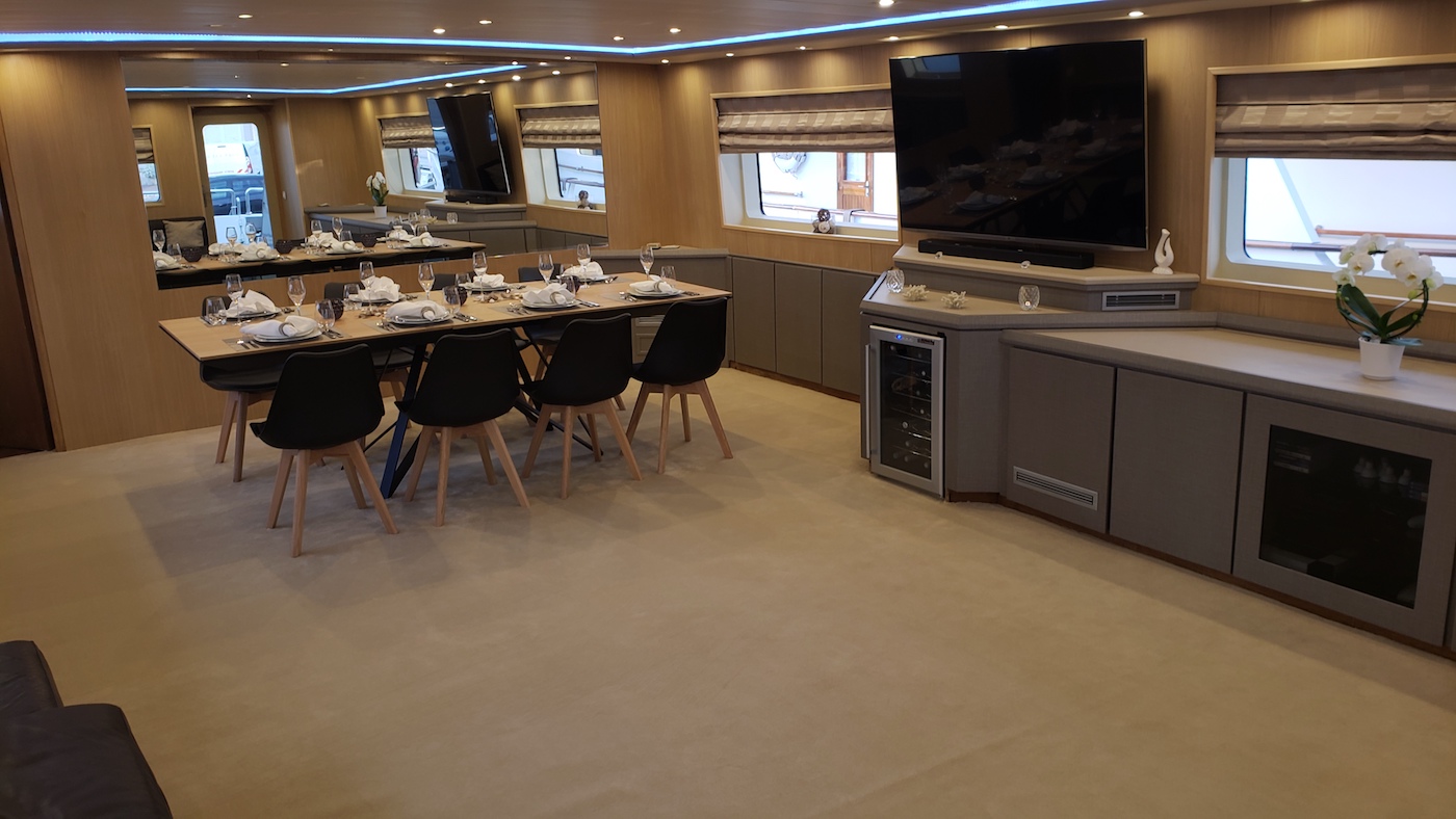 The aft deck aboard is adjacent to the salon and offers partial shade, seating and an alfresco dining option. With a beam of 7.3m (23.11ft), she ...