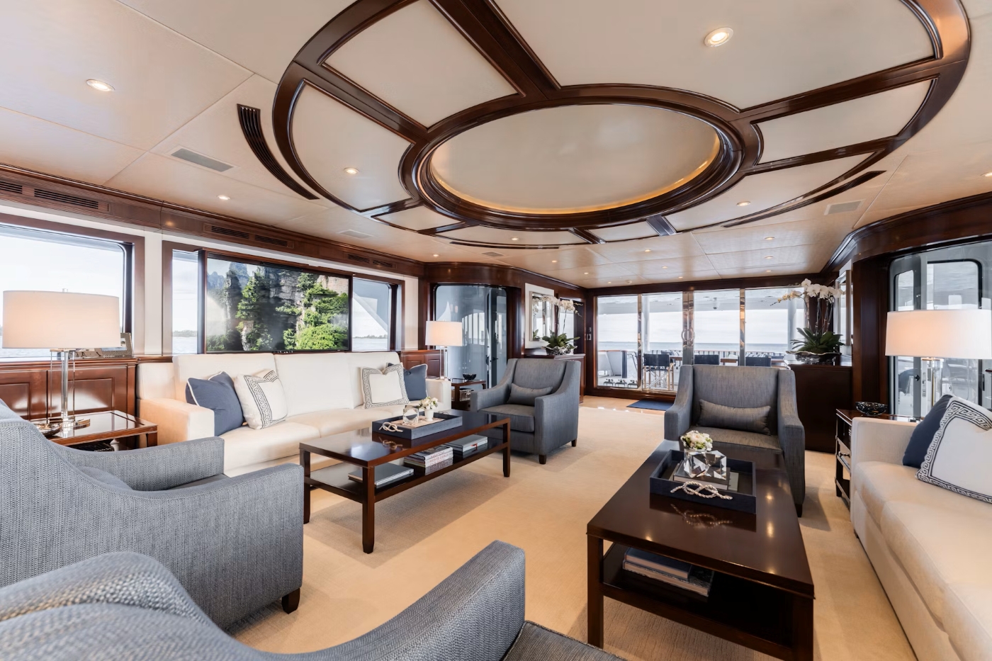 The SUMMERDANCE motor yacht has a spacious Main Salon featuring a sofa and four chairs, a game table as well as a fully-equipped entertainment centre and a piano, with a self-playing feature. Forward of the main salon is the formal Dining area able to seat up to 10 charter guests.
