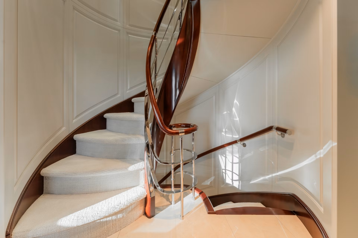 A full-service bar with back-lit onyx counters and stool seating is a popular pre-dinner gathering spot. SUMMERDANCE superyacht boasts an elegant Cherry wood interior throughout and a Kaleidescape system controlled by ...