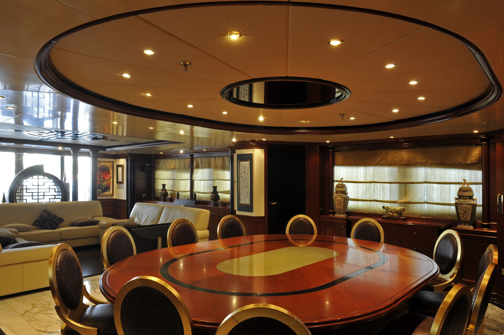 Crewed charter yacht ARRAFIQ boasts a fittingly oriental bespoke interior by the ...