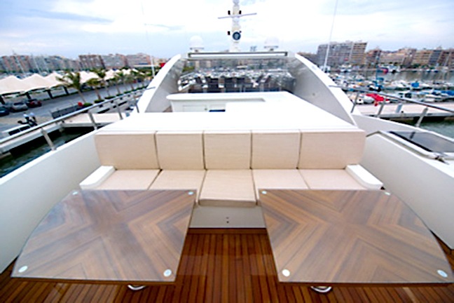 Forward sundeck seating and wet bar