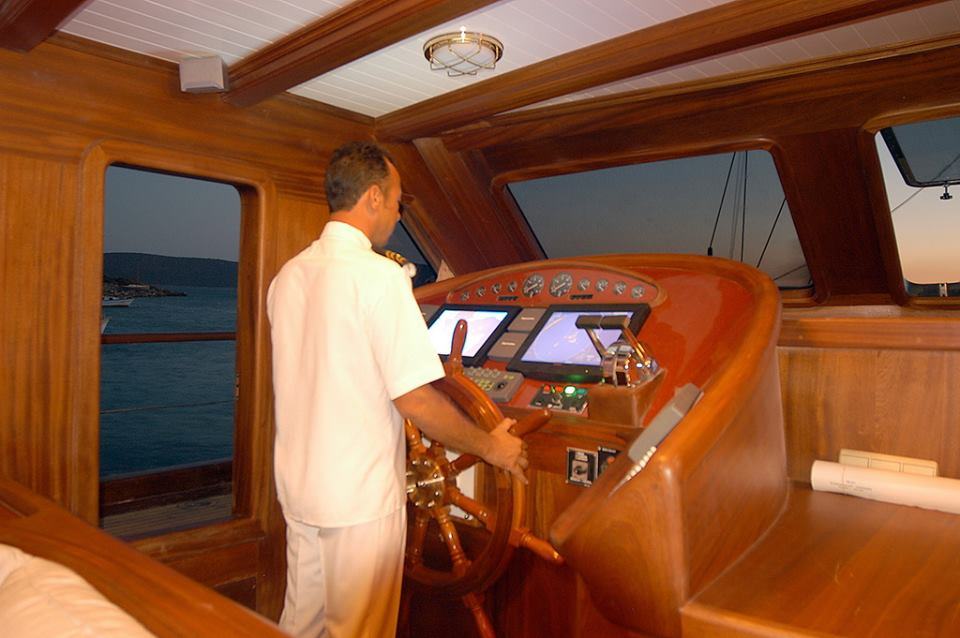 Crewed charter yacht QUEEN OF KARIA features spacious interiors with a timeless elegance.
