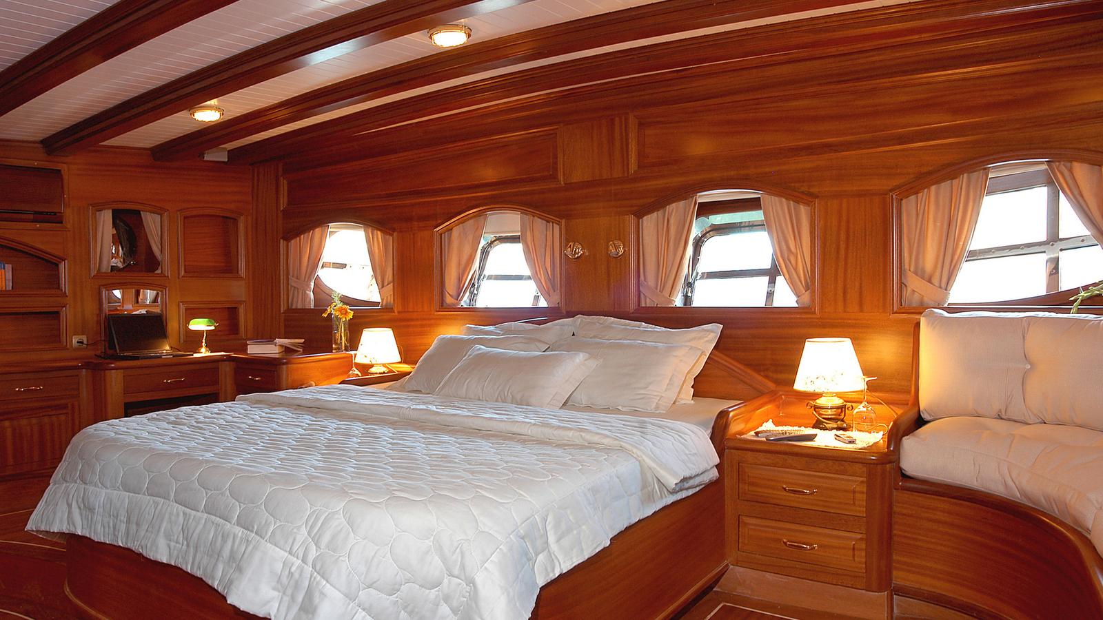 There are five lovely and comfortable cabins, including a spacious master cabin, one VIP cabin, one double cabin, as well as two twin cabins. The master cabin is aft, and full beam of the yacht, with a center, lined king size bed and comfortable lounge. The VIP cabin is forward of the yacht to port and offers a private seating area.