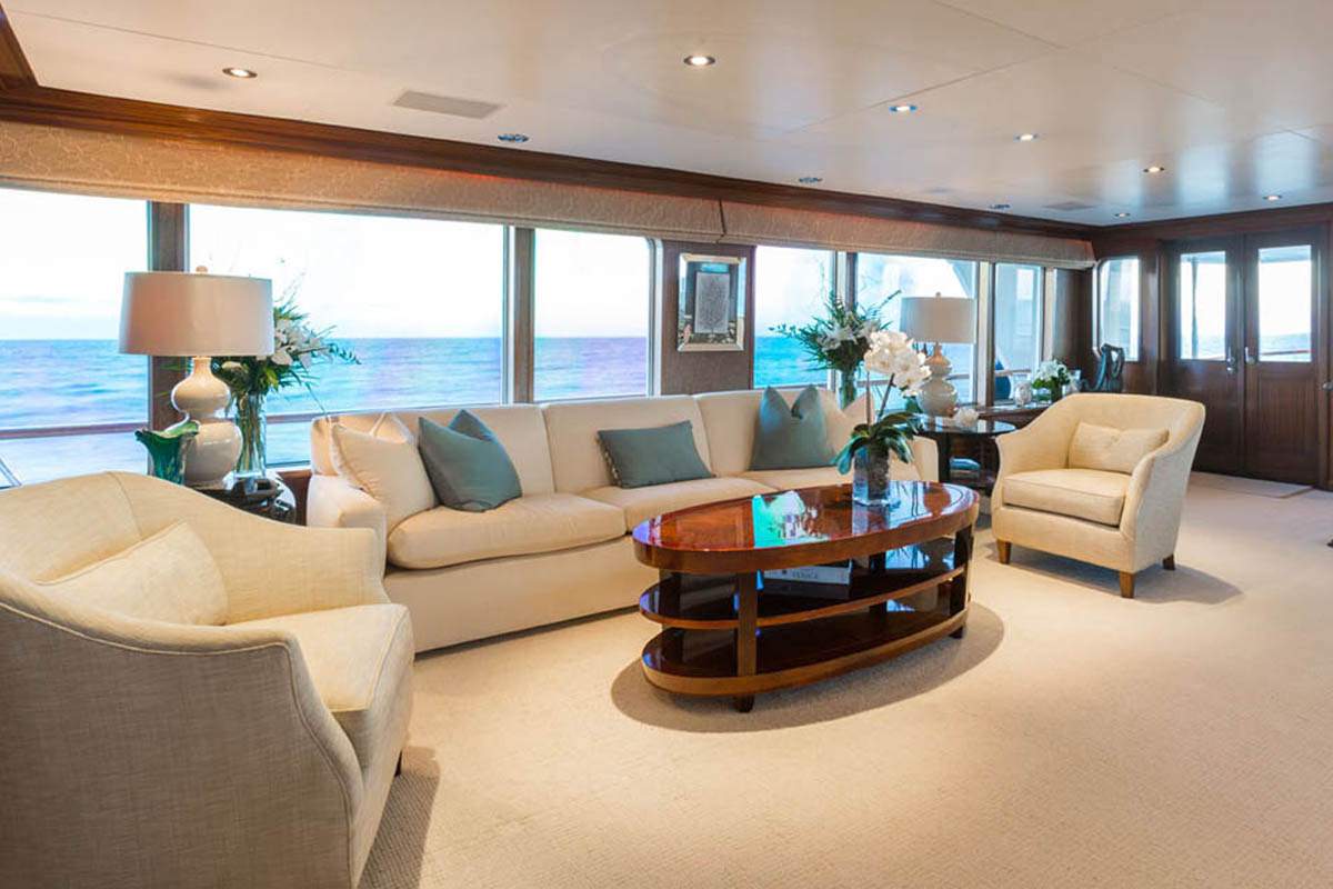 Entering the Main Salon, guests have a superb and vast area to socialize, relax or entertain with two full sofa seating areas - one to starboard and one aft to port along with a game table.
