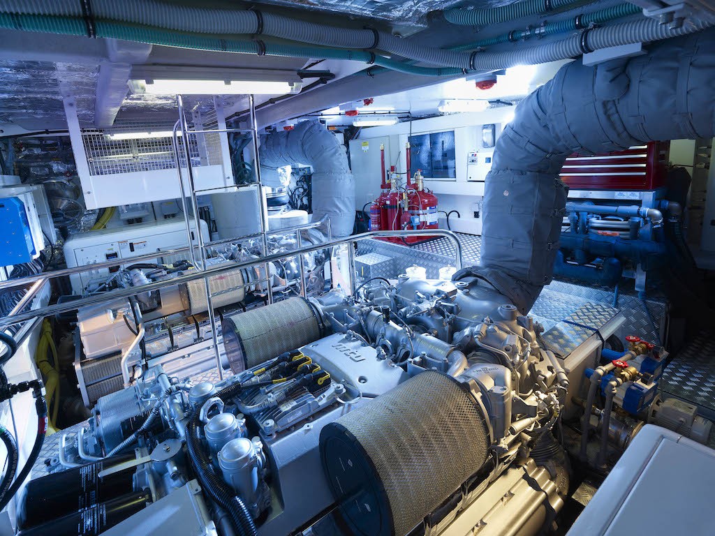 Sunseeker 88 VEUVE yacht is powered by twin MTU 1950 hp engines to a maximum speed of 20 knots and is fitted with TRAC Zero speed stabilisers for additional comfort.