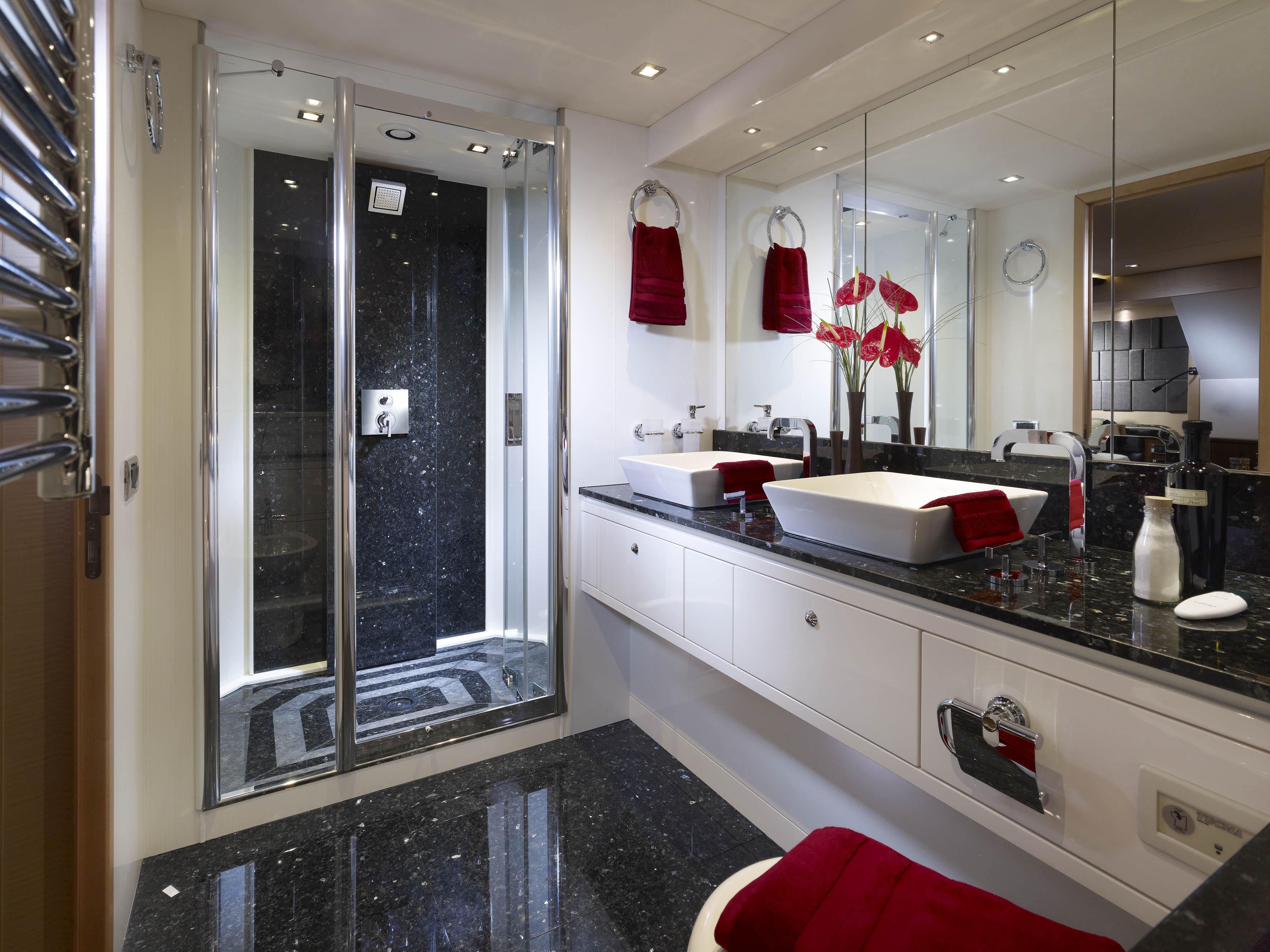The accommodation is divided into 4 spacious and luxurious cabins, including one master stateroom located midships, one forward VIP stateroom, one aft port twin/double guest cabin and one aft starboard twin/double guest cabin. There is a crew of 4 professionals taking care of VEUVE and making sure charter guests have a fantastic time on board.