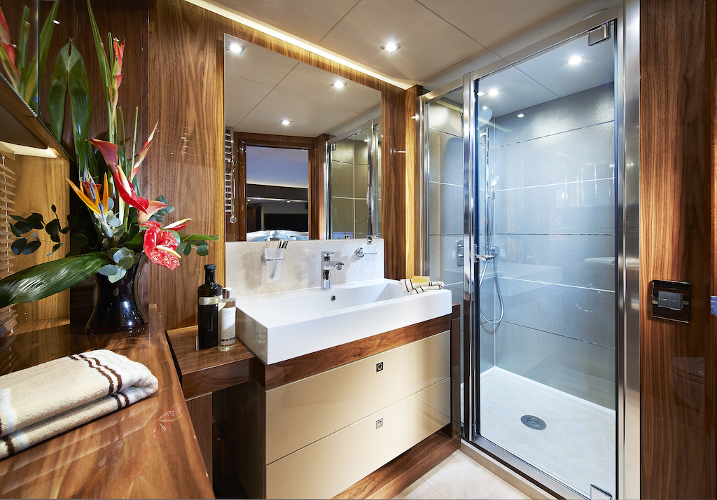 Accommodation for eight charter guests on board HIGH ENERGY superyacht is offered in four alluring cabins, including one master stateroom midship, one VIP cabin forward and two twin/double guest cabins.