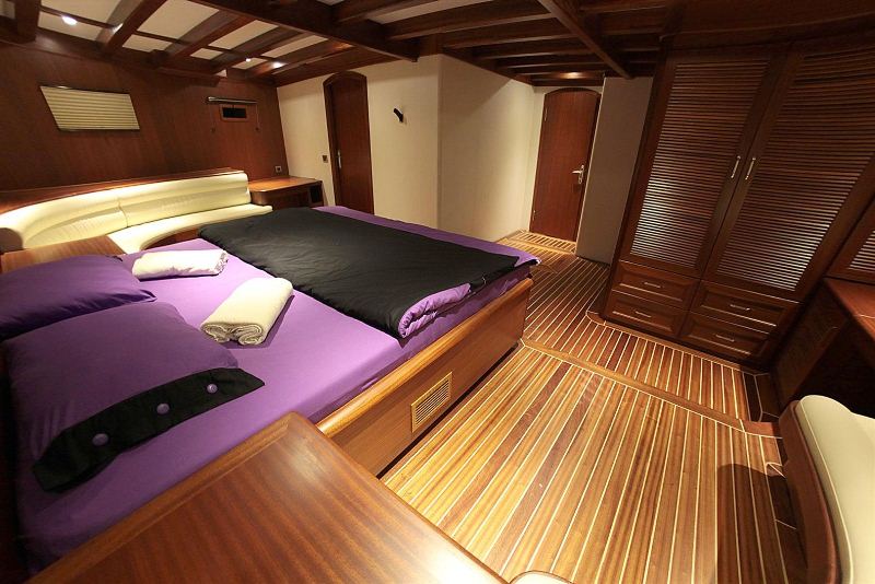 Guest accommodation is on the lower deck, in 2 master cabins, 3 double cabins and 1 twin cabin, each boasting private en-suite facilities and personal entertainment systems.