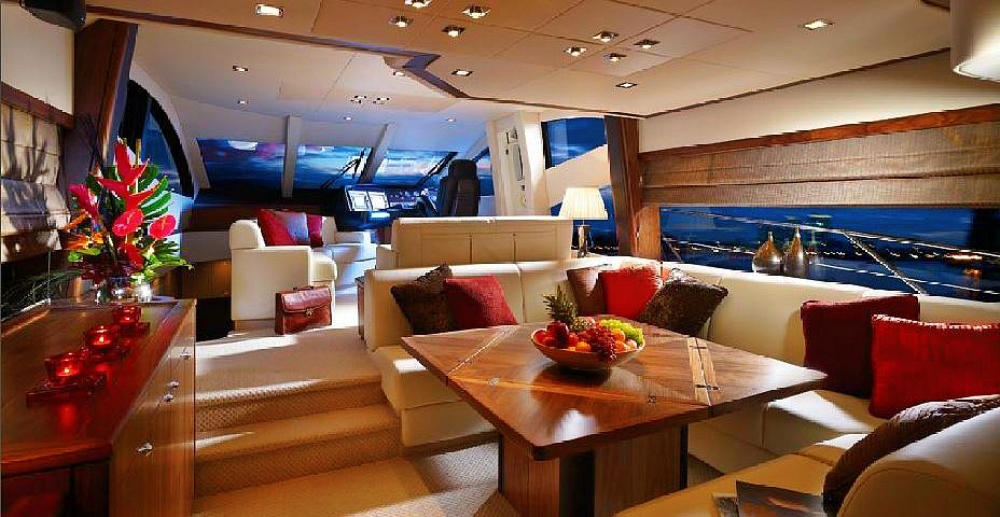 The salon and dining is an integrated plan, featuring a comfortable lounge and formal dining area, with a full entertainment system opposite. Forward of the salon, is a further seating area and the main helm station.