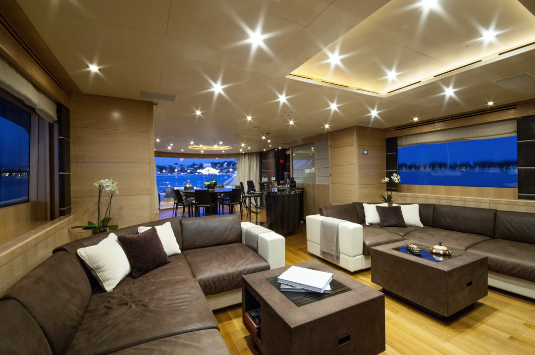 M/Y PETRA’S sleek hull boasts 2 decks and ample exterior living.