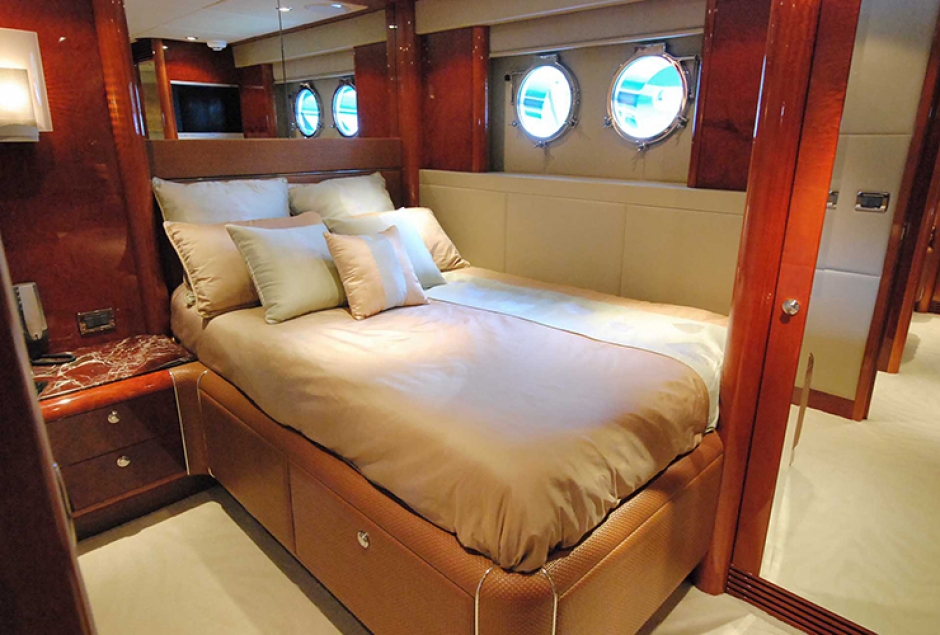 The MOKSHA motor yacht offers deluxe accommodation for 6 charter guests in 3 guest cabins. The master suite is forward and full beam of the yacht, with a center lined double bed, sofa and large en-suite facilities.