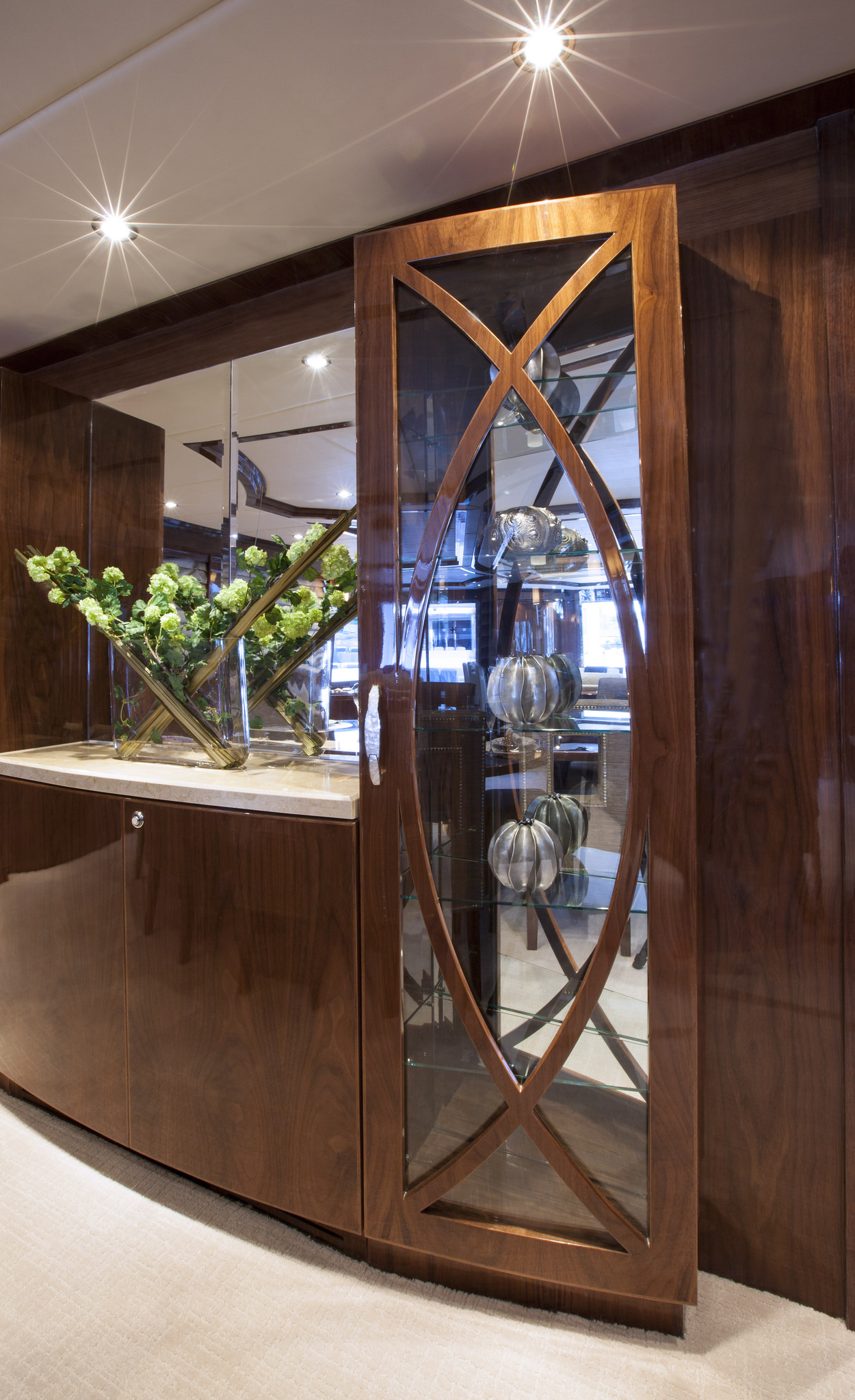 She features lovely custom interiors, created by Yacht Interiors by Shelley.