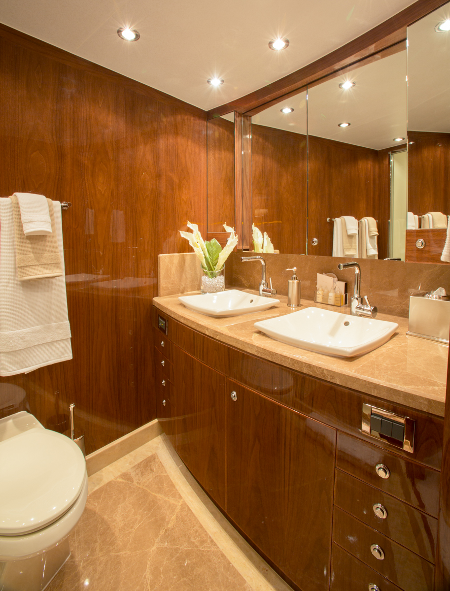 The VIP cabin is forward, with a centre lined queen size bed. A further two guest cabins consist of one double and one twin cabin, each with private en-suite facilities. Tenders and toys: 1 Tender with 70hp engine, Jet Ski, ...