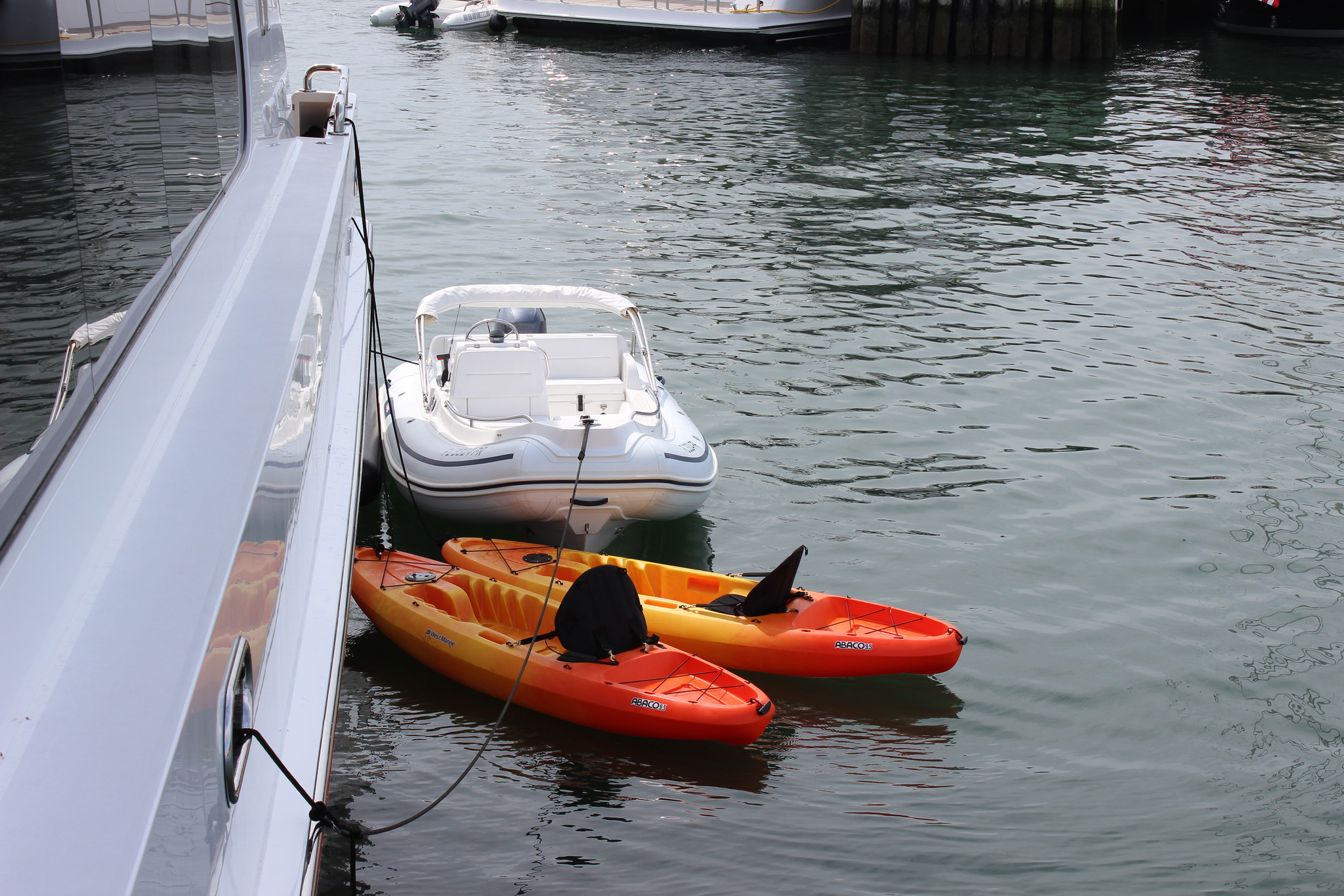 On the upper deck, features both sun and shaded areas, a deluxe Jacuzzi tub with attached marble wet bar, ample seating and fully equipped wet bar and service area. Further aft, teak chairs and a cocktail table are the ideal ...