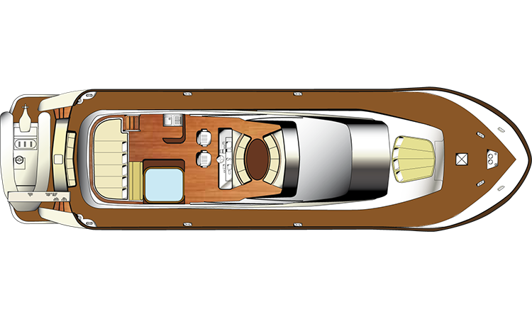 On deck guests have plenty of choices for relaxing and entertaining. The aft deck is shaded and has an alfresco dining option. On the foredeck is a generous seating area and sunpad.