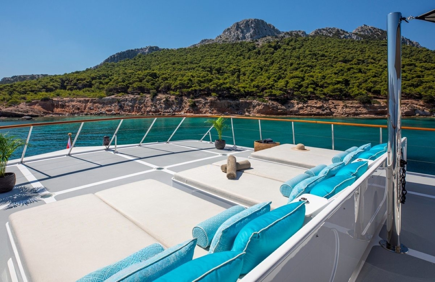 At the rear of the Sun Deck are 3 huge sun beds with windscreens.