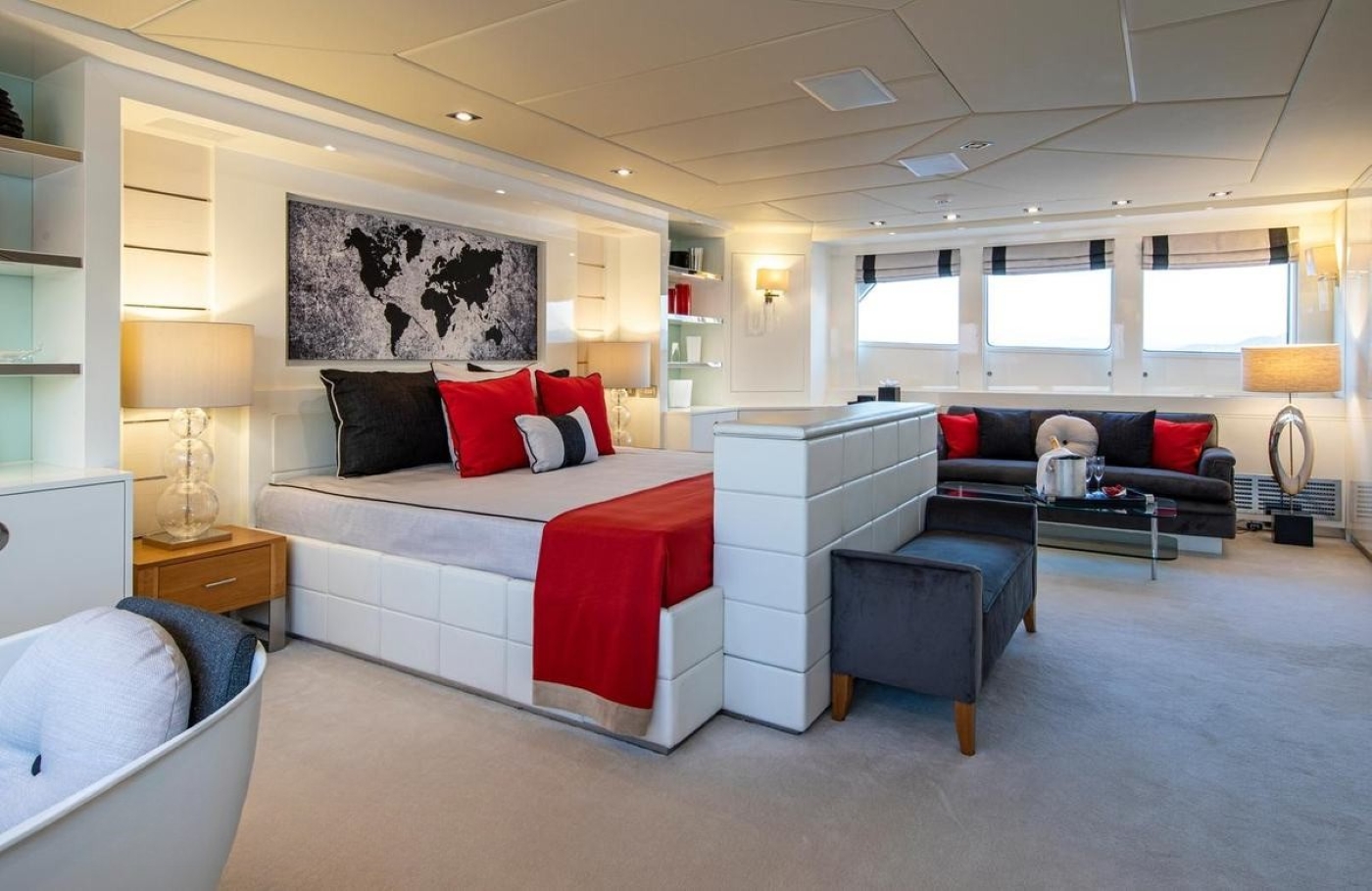 Motor yacht VICTORY can accommodate up to 12 guests in 6 spacious staterooms. The Master suite spans the full width of the yacht and is located on the main deck.
