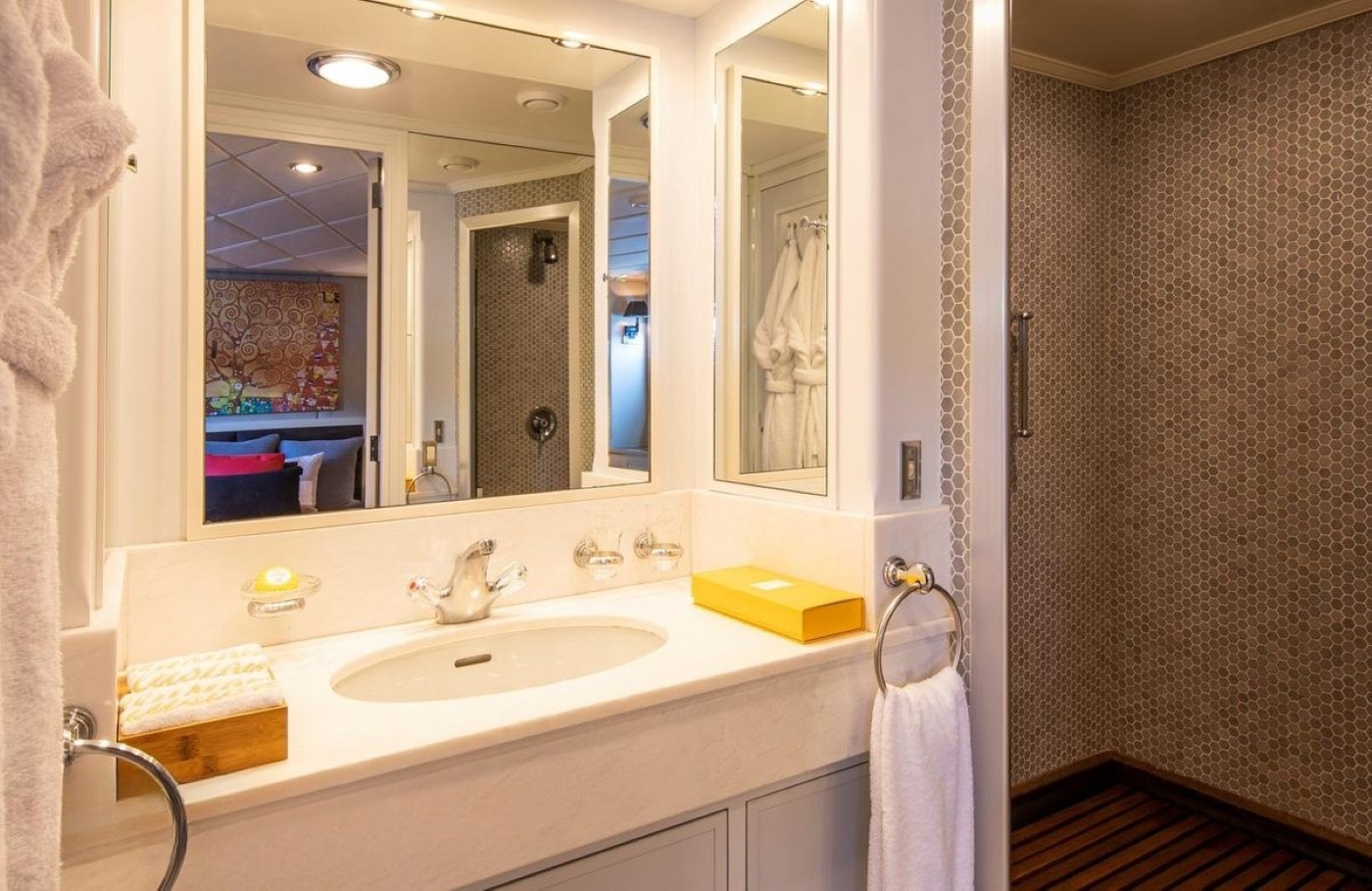 A king size bed, comfortable seating area, dressing room, and an ensuite bathroom and spa pool is only some of the features of this impressive stateroom. In keeping with the rest of the yacht, the VIP Stateroom, Two Guest Double Staterooms, and Two Twin Single Guest Staterooms are similarily spacious and well designed.