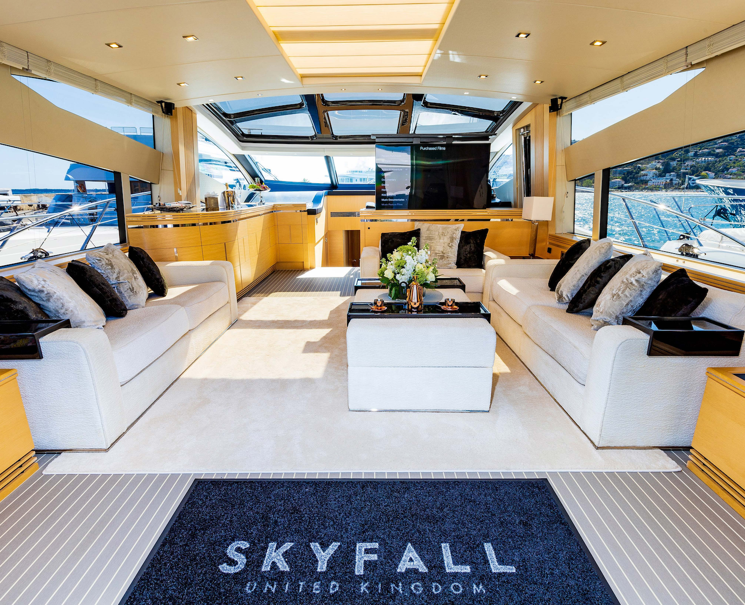 Sunseeker SKYFALL UNITED KINGDOM can sleep up to 8 guests in maximum comfort and style. Skyfall United Kingdom yacht features spacious increased deck storage and a larger tender garage that can store the Williams 445 jet yacht