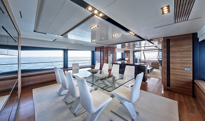Luxury motor yacht FUSION oozes style with her sleek dark metallic painted hull measuring 37m (121.5ft). Designed by naval architect Dixon Yachts / Scaro Design, she was built and delivered by the prestigious Peri Yachts in 2012.